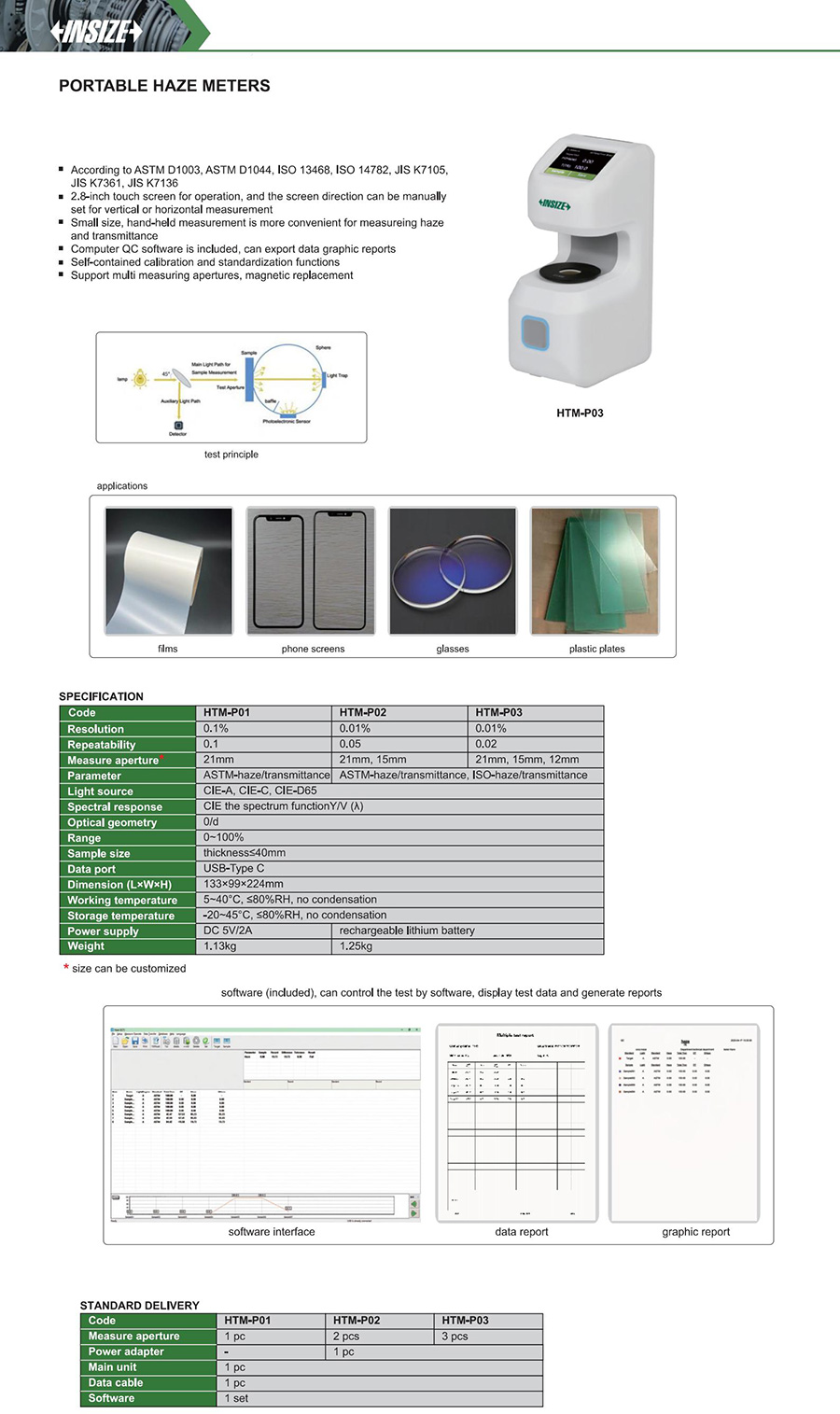 | HTM-P02 | ASTM-haze/transmittance, ISO-haze/transmittance | 0.0001 | 21mm, 15mm |