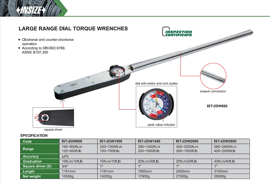 IST-2DW2800 dial 560~2800N.m, 400~2000ft.lb engraved-line fixed head