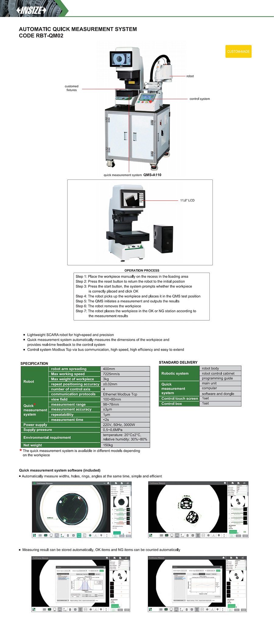Quick measurement system automatically measures the dimensions of the workpiece and provides real-time feedback to the control system