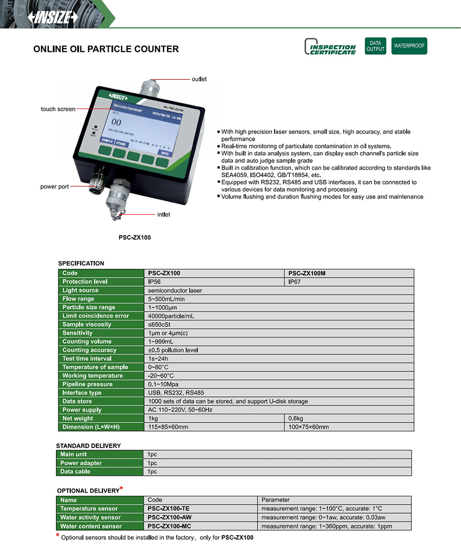 | PSC-ZX100M | semiconductor laser | 1~1000μm | 40000particle/ml |