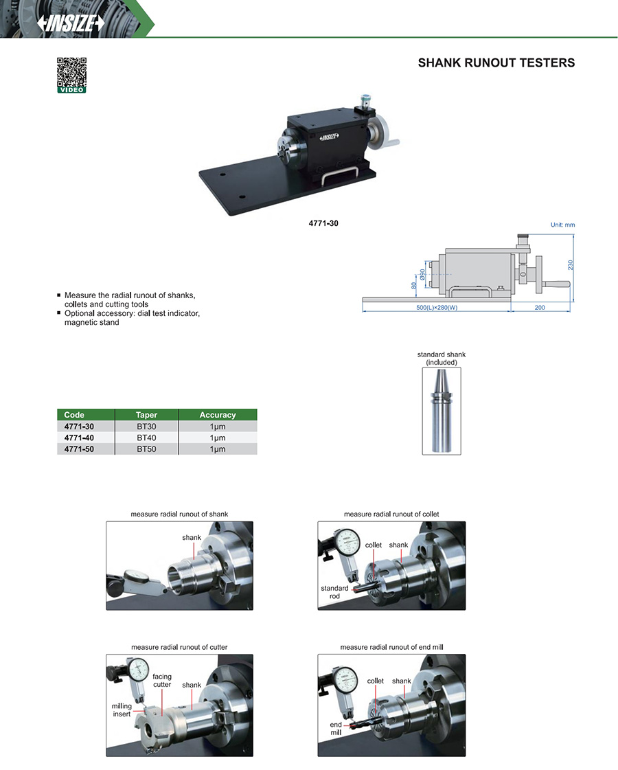 Measure the radial runout of shanks, collets and cutting tools