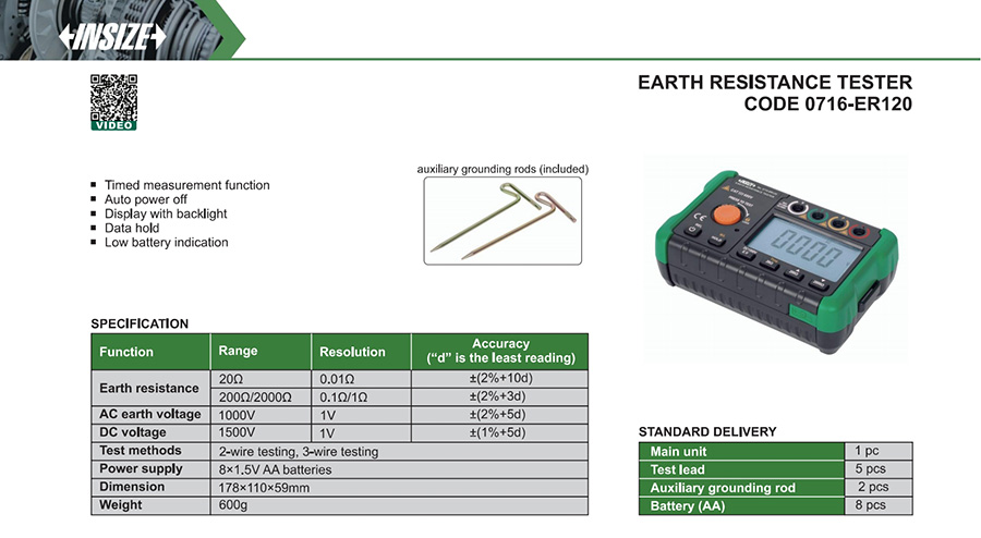 0716-ER120 20Ω/200Ω/2000Ω 1000V 1500V 2-wire testing, 3-wire testing
