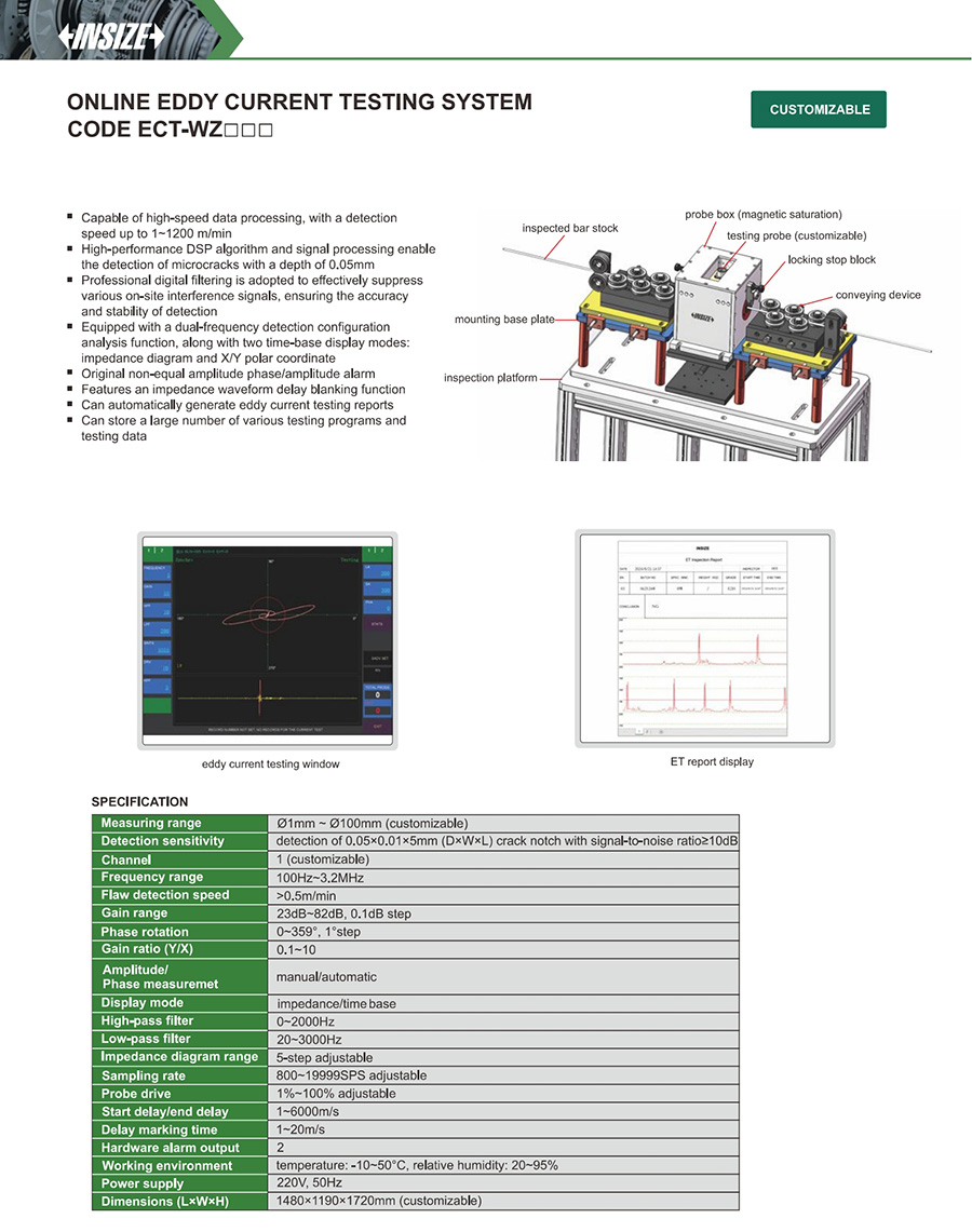 | ECT-WZ□□□ | 100Hz~3.2MHz | Flaw detection: ˃0.5m/min | 23dB~82dB, 0.1dB step | 0~359°, 1°step |
