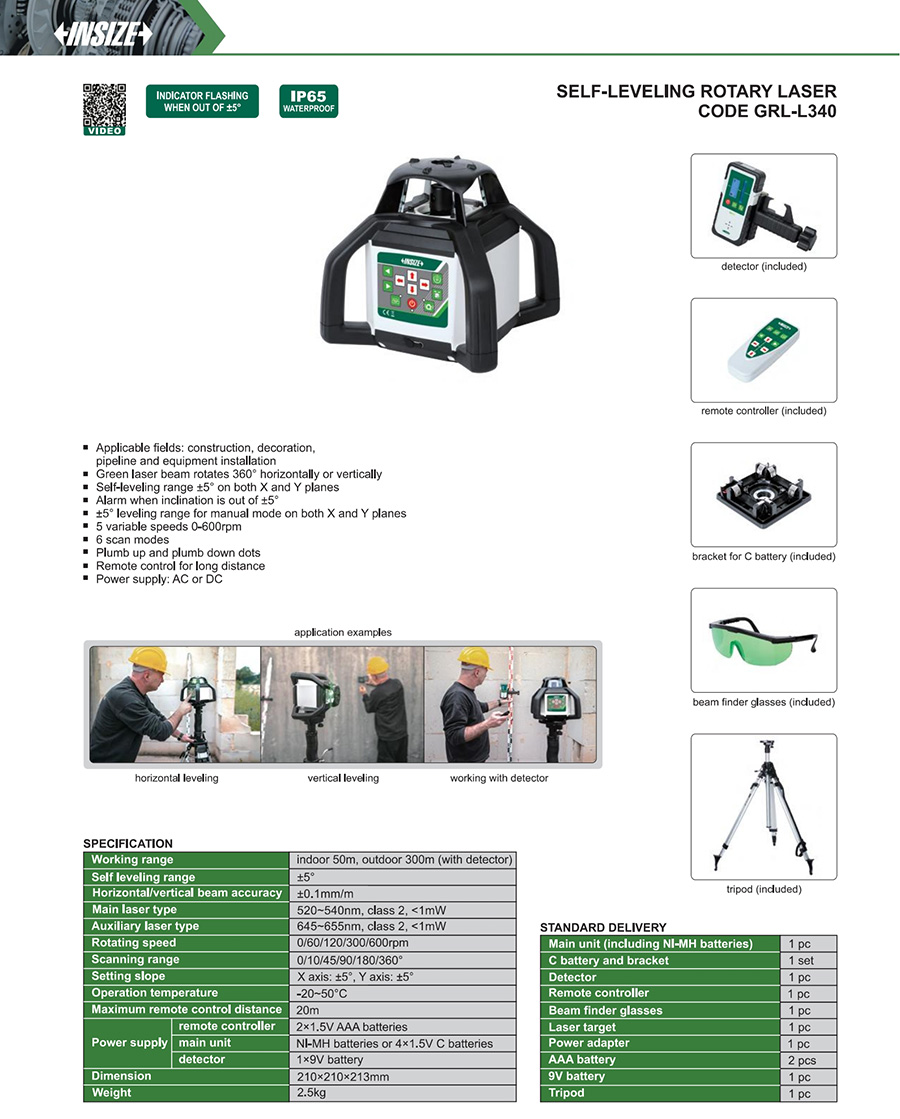 GRL-L340 ±0.1mm/m -20~50°C indoor 50m, outdoor 300m (with detector) ±5°