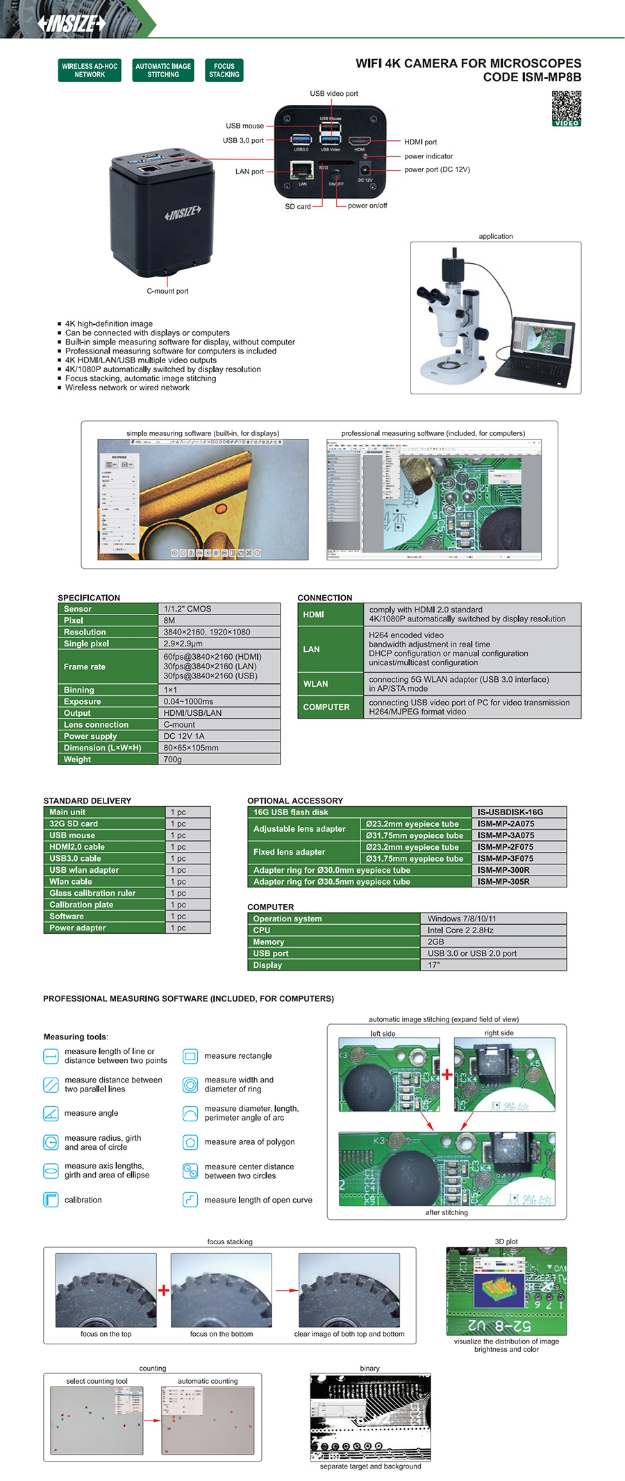 ISM-MP8B 1/1.2"cmos 3840x2160, 1920x1080 8M 60fps@3840x2160(HDMI), 30fps@3840x2160(LAN), 30fps@3840x2160(USB) 2.9x2.9um