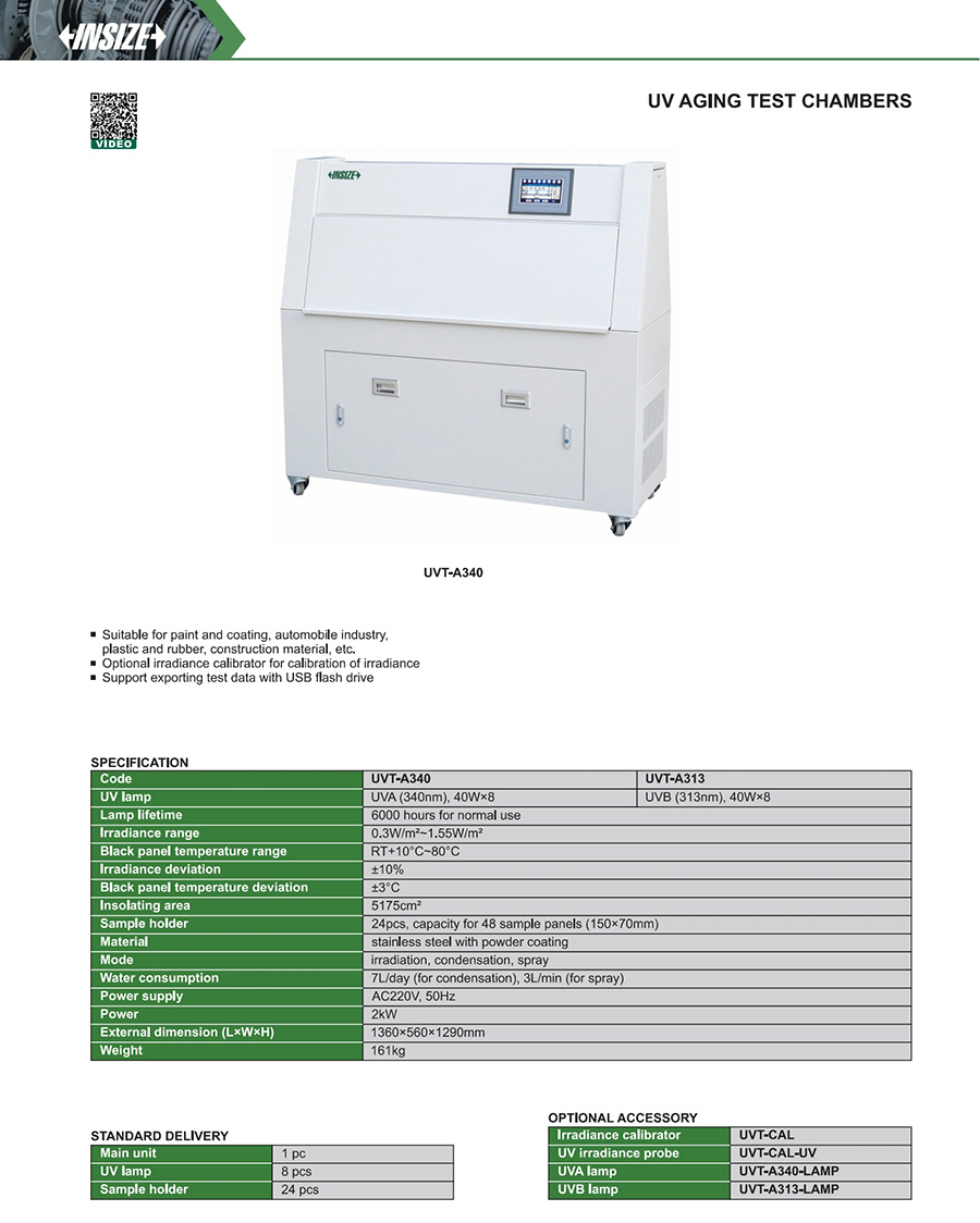UVT-A340 UVA (340nm), 40W×8 0.3W/m²~1.55W/m²