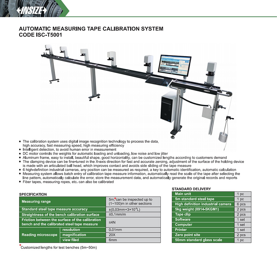 | ISC-T5001 | 5m, Customized lengths for test benches | ≤0.1 mm/m | ±(0.03 mm + 3×10⁻⁵L) |