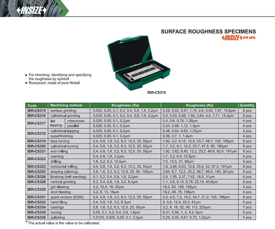 ISR-CS315 surface grinding 0.025, 0.05, 0.1, 0.2, 0.4, 0.8, 1.6, 3.2µm 0.29, 0.55, 0.91, 1.74, 2.6, 4.65, 7.87, 15.6µm 8 pcs