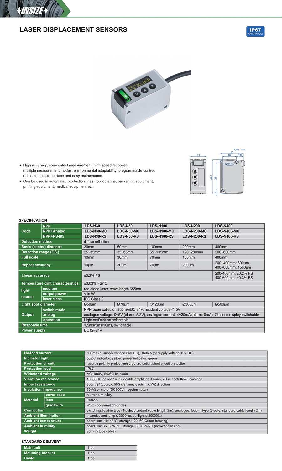 LDS-N30-RS laser 25~35mm ±0.2%FS