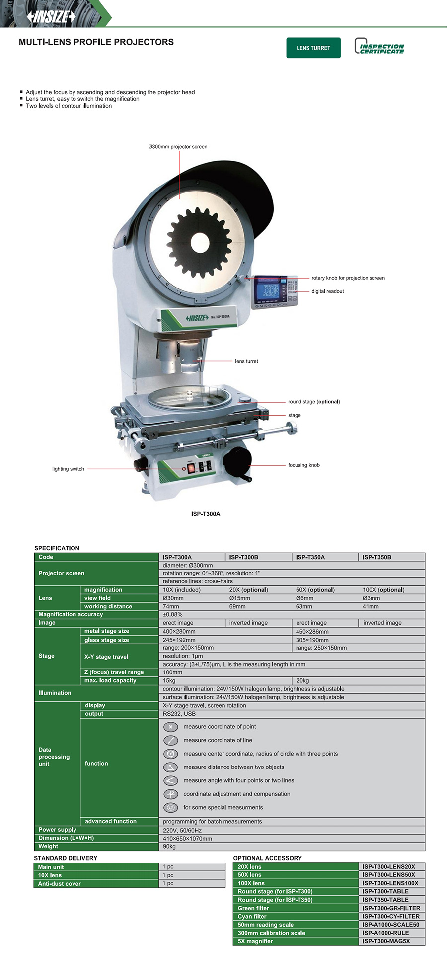 ISP-T350A vertical 250×150mm (3+L/75)µm 1µm not included Ø300mm erect image
