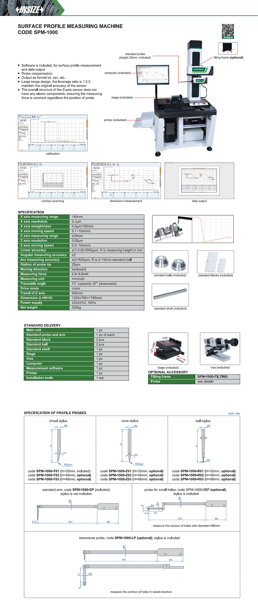 Code X axis measuring range Z axis measuring range Travel of Z axis Roughness