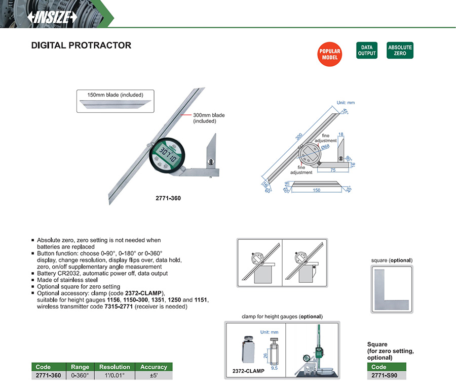 | 2771-360 | 0-360° | ±5' | 1'/0.01° |