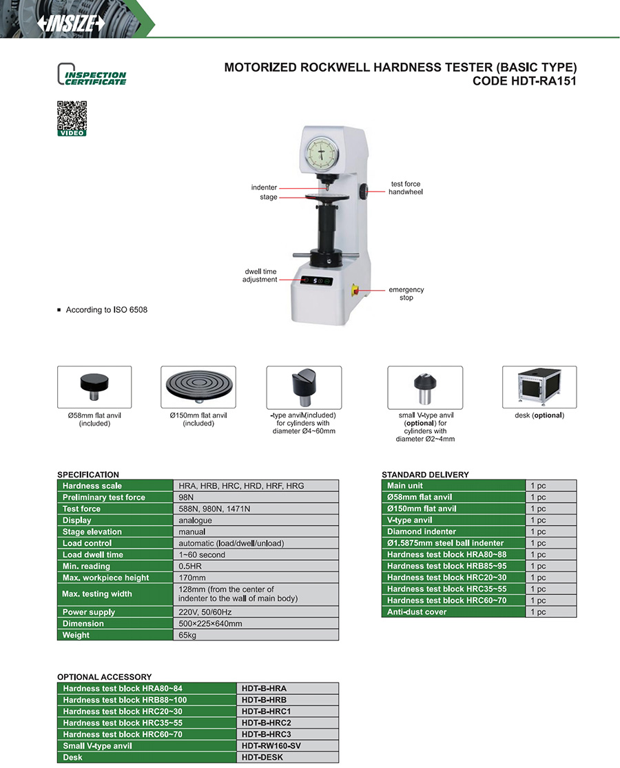 HDT-RA151 0.5HR automatic (load/dwell/unload) 170mm 128mm HRA, HRB, HRC, HRD, HRF, HRG