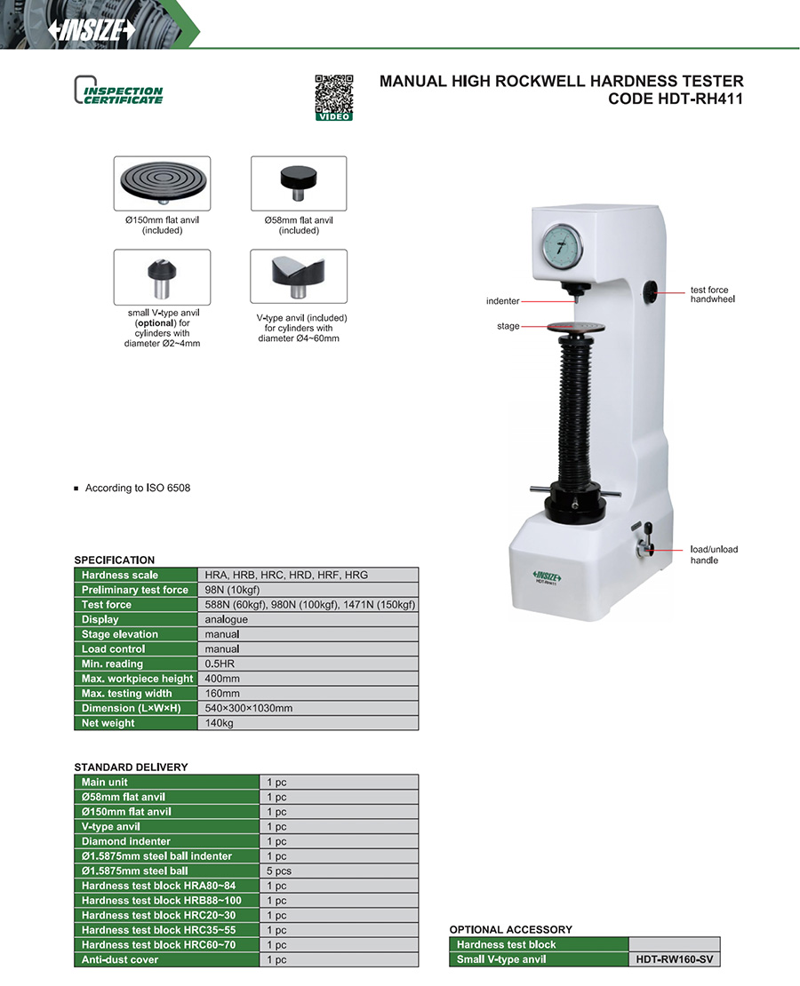 | Code | Resolution | Load control | Max. workpiece height | Max. testing width | Hardness scale |