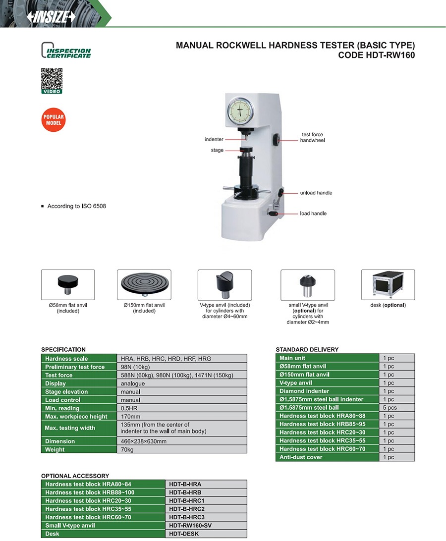 HDT-RW160 0.5HR manual 170mm 135mm HRA, HRB, HRC, HRD, HRF, HRG