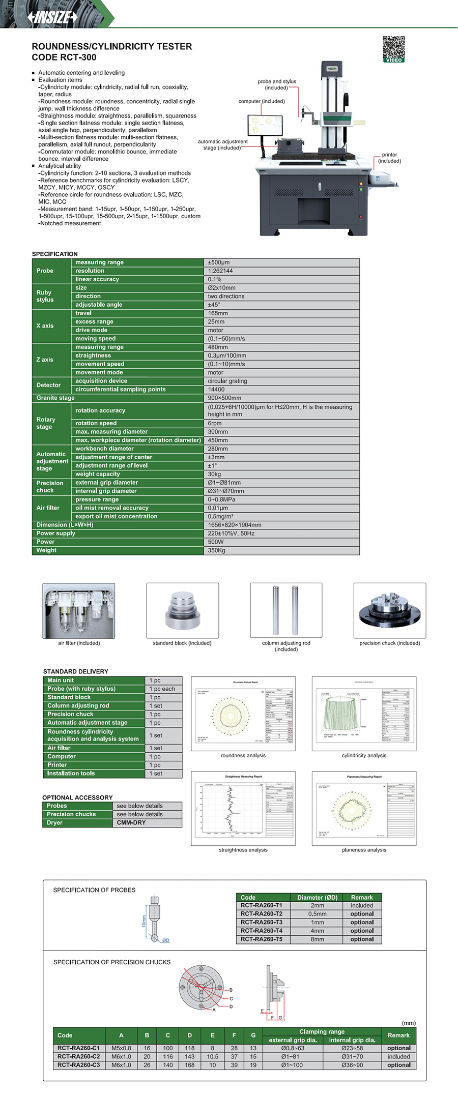 Code Z axis measuring range Probe measuring range Rotary stage max. measuring diameter Rotary stage max. workpiece diameter (rotation diameter)