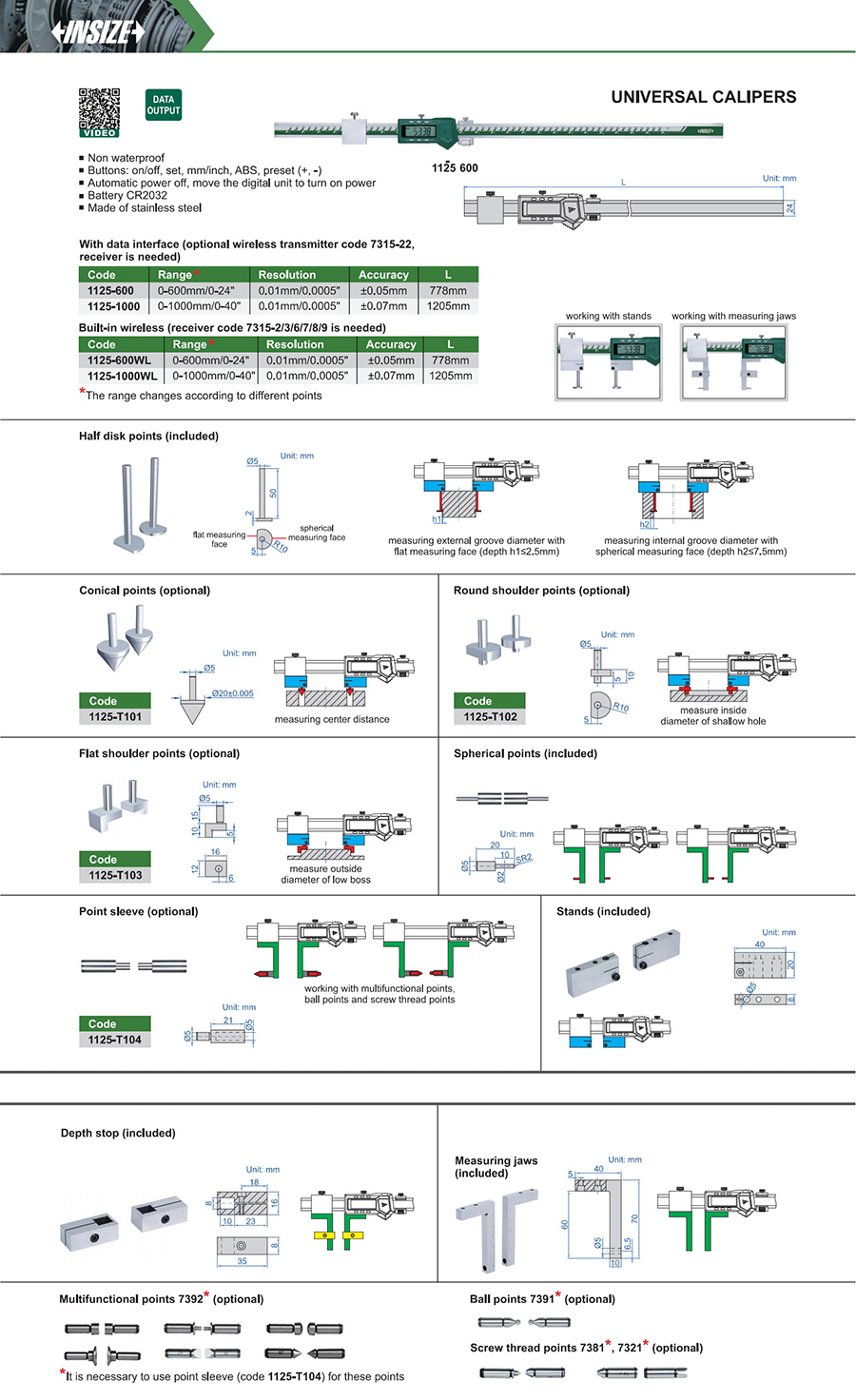1125-1000WL 0-1000mm/0-40" ±0.07mm 0.01mm/0.0005" built-in wireless