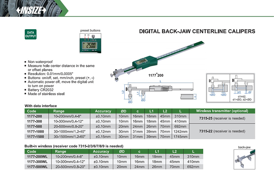 1177-200WL 10-200mm/0.4-8" ±0.10mm 0.01mm/0.0005" built-in wireless