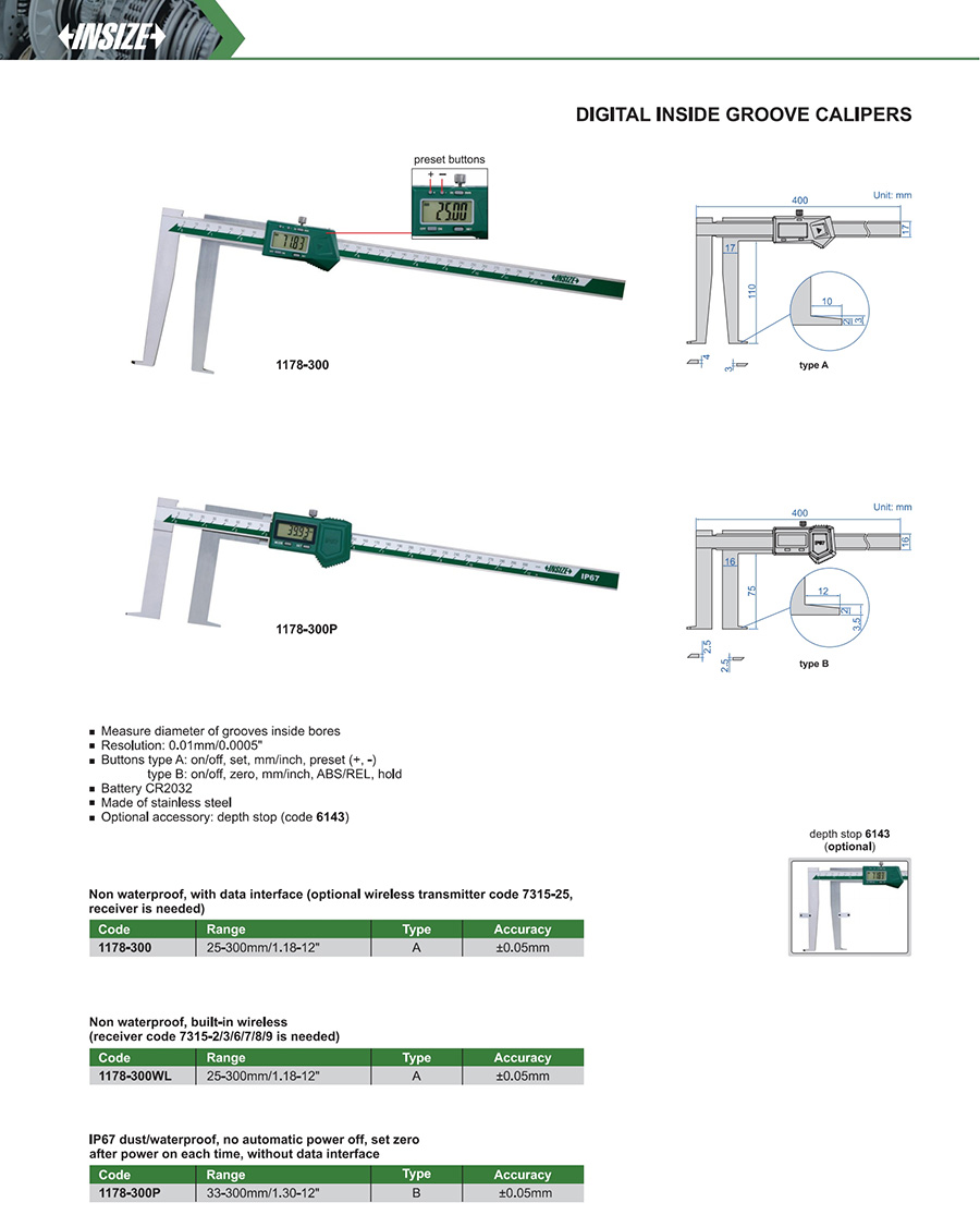 | 1178-300 | 25-300mm/1.18-12" | ±0.05mm | 0.01mm/0.0005" | with data interface |