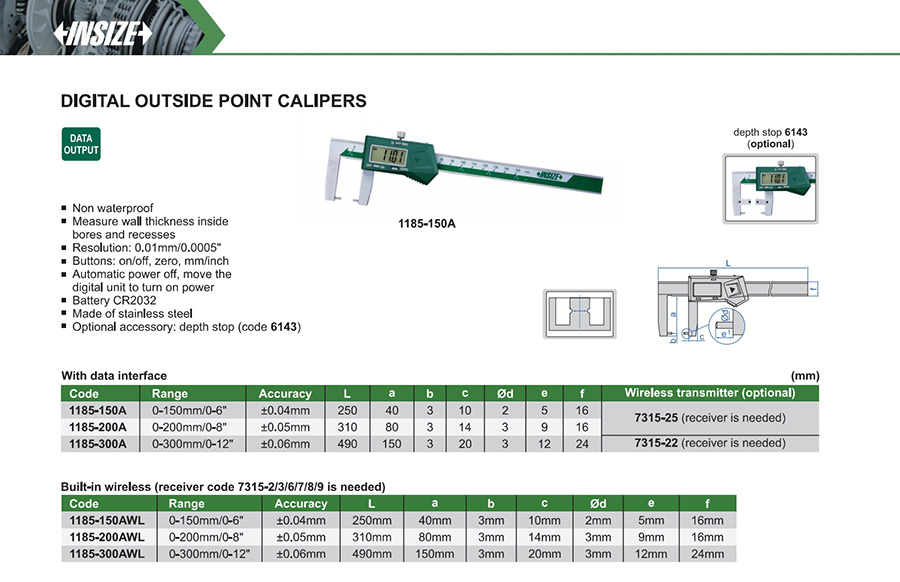 1185-200AWL 0-200mm/0-8" ±0.05mm 0.01mm/0.0005" built-in wireless