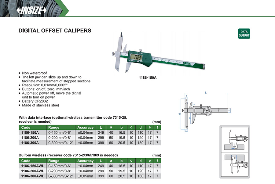 1186-300A 0-300mm/0-12" ±0.05mm 0.01mm/0.0005" with data interface