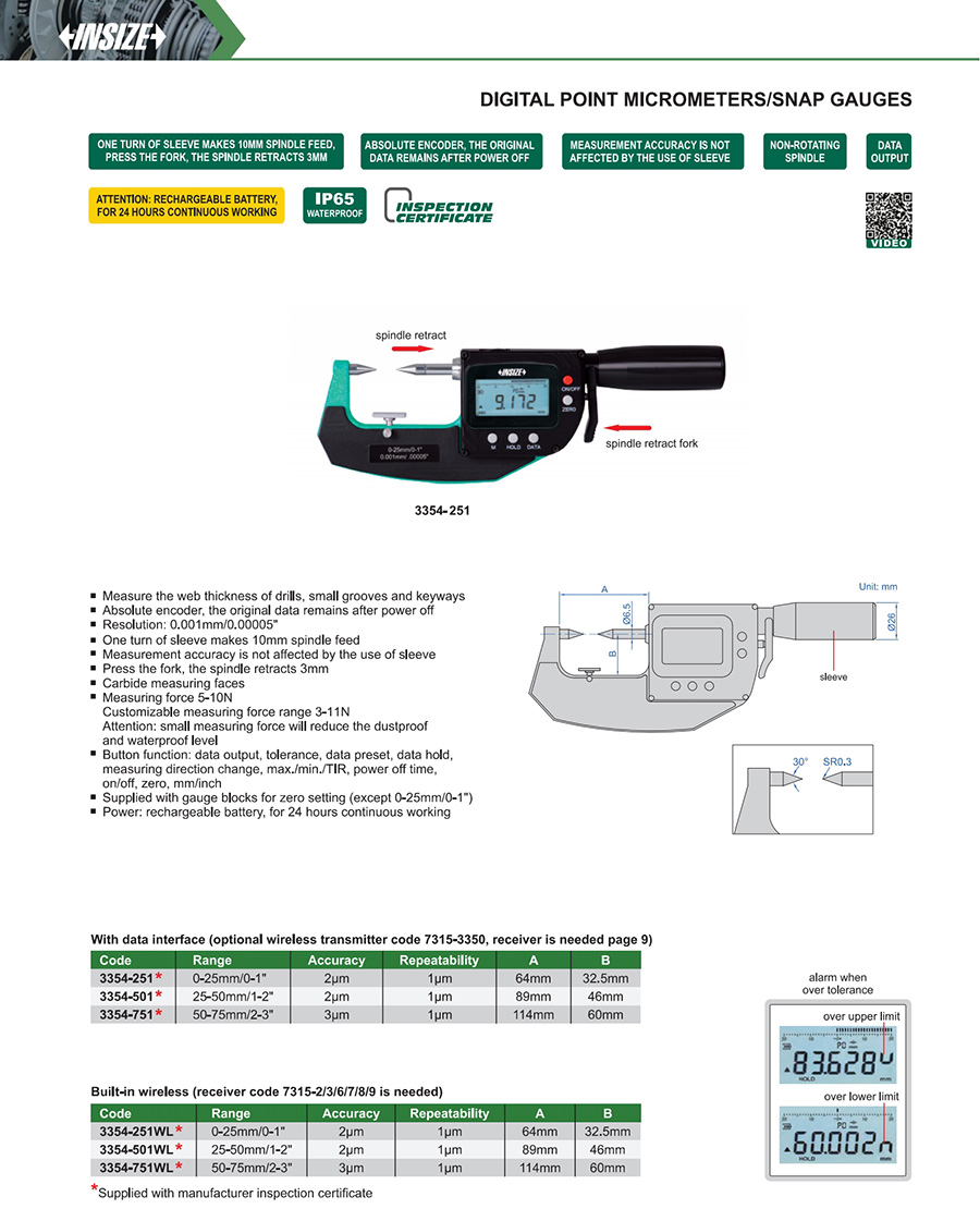 3354-501WL 25-50mm/1-2" 2μm 0.001mm/0.00005" built-in wireless