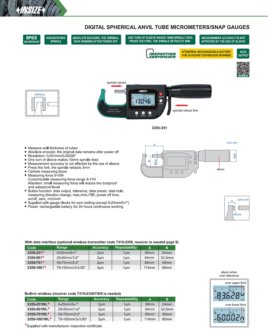 3355-251 0-25mm/0-1" 2μm 0.001mm/0.00005"