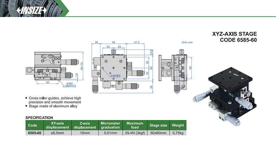 6585-60 ±6.5mm 10mm 0.01mm 60x60mm
