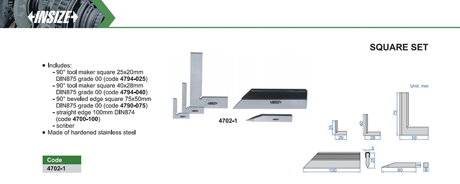 90° tool maker square 25x20mm DIN875 grade 00 (code 4794-025)