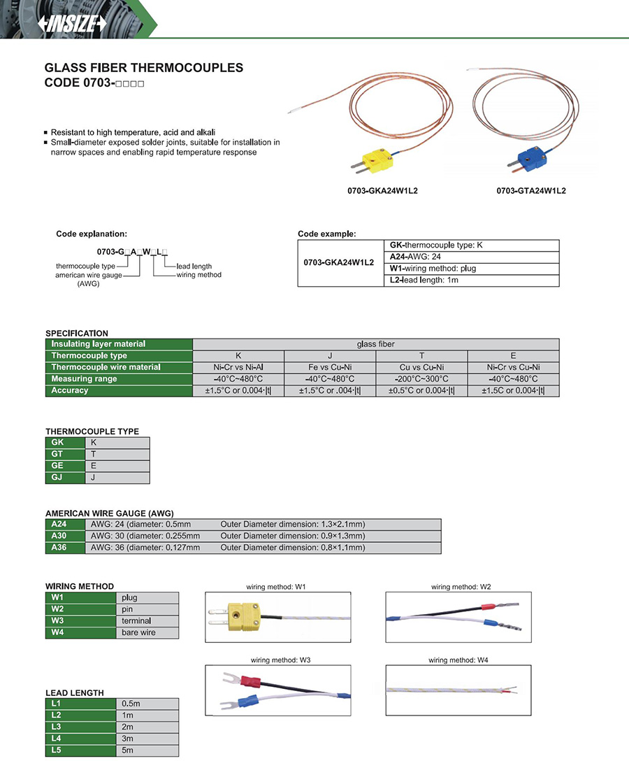 0703-□□ K thermocouple -40°C~480°C ±1.5°C or 0.004∙|t|