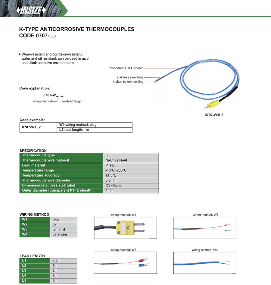 | 0707-□□ | K | thermocouple | -40°C~200°C | ±1.5°C |