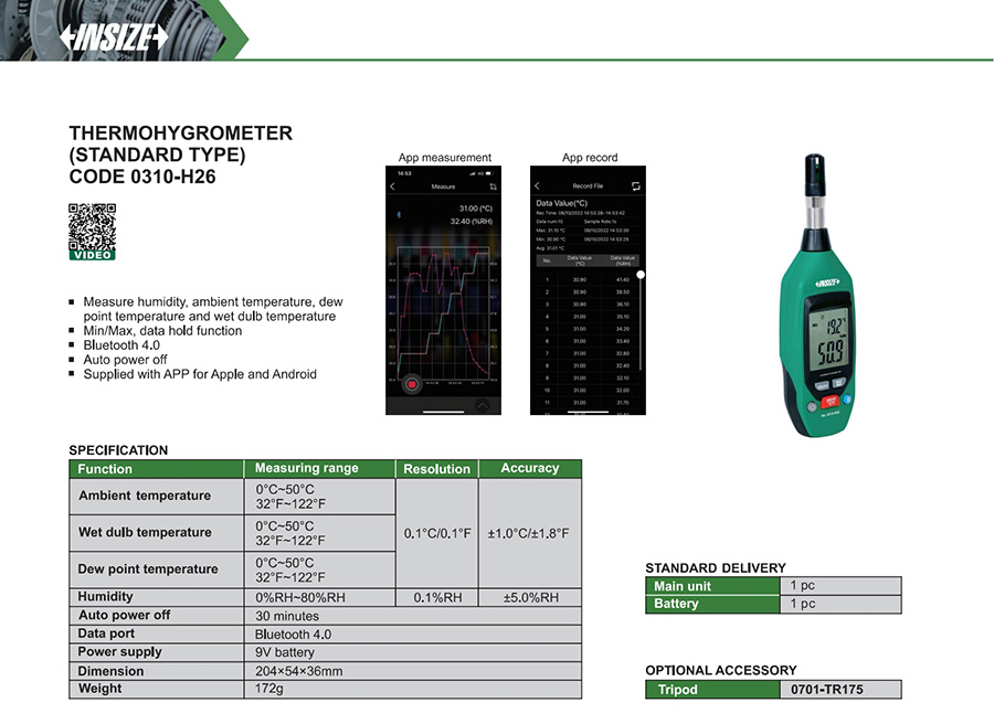 0310-H26 digital external ±1.0°C/±1.8°F 0%RH~80%RH ±5.0%RH yes yes 0°C~50°C/32°F~122°F