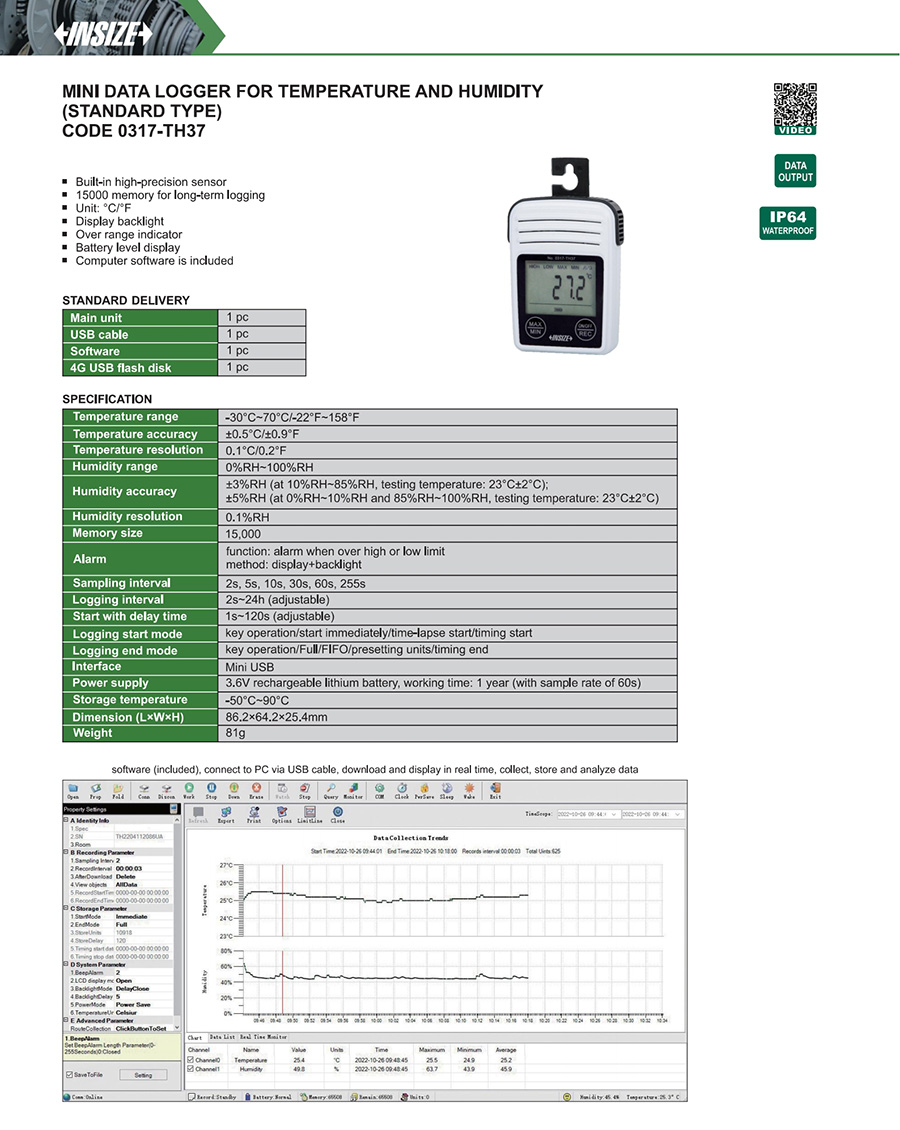 | 0317-TH37 | digital | internal | ±0.5°C/±0.9°F | 0%RH~100%RH | ±3%RH (at 10%RH~85%RH, testing temperature: 23°C±2°C); ±5%RH (at 0%RH~10%RH and 85%RH~100%RH, testing temperature: 23°C±2°C) | yes | yes | yes | -30°C~70°C/-22°F~158°F |