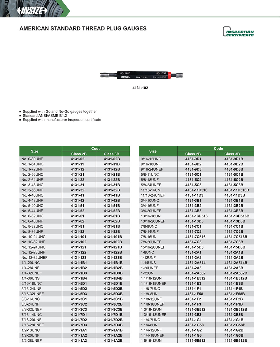 Home / Dimensional Metrology / Measuring Tools / Standards And Gauge Blocks / Thread Plug & Ring Gauges