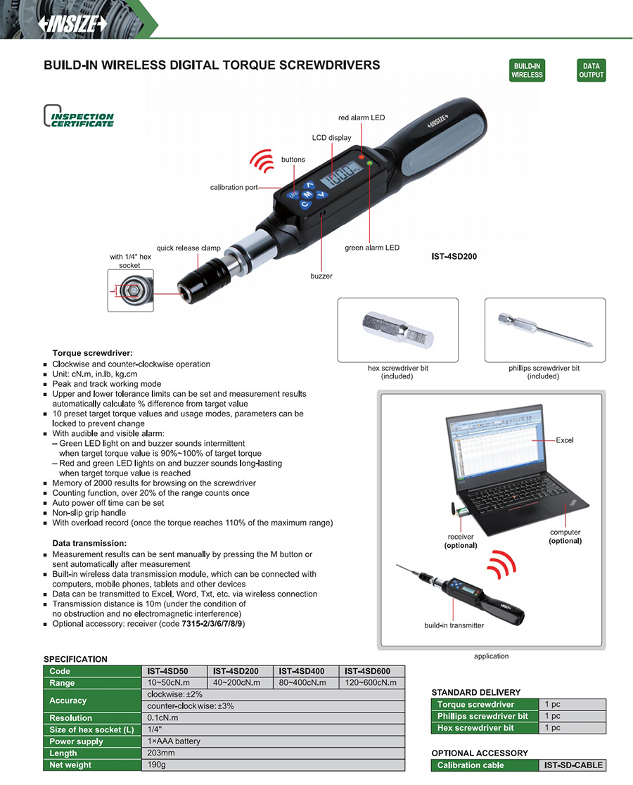 | IST-4SD200 | digital | 40~200cN.m | wireless transmission (keyboard signal) | digital display |