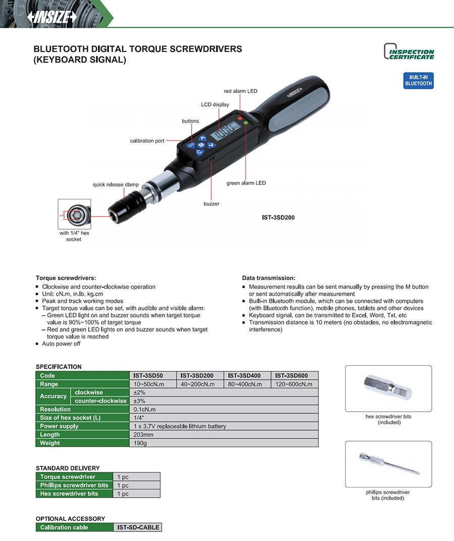 | IST-3SD200 | digital | 40~200cN.m | wireless transmission (keyboard signal) | digital display |