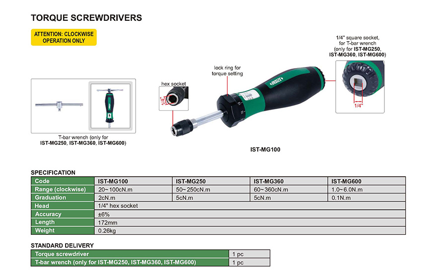IST-MG250 mechanical preset 50~250cN.m no transmission window design