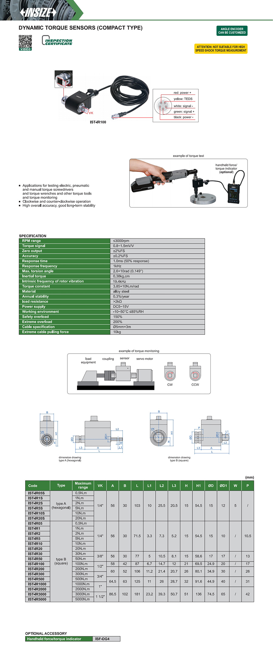 | IST-IR1 | rotary type | dynamic torque | portable installation/mounted on machine | no | 1N.m |