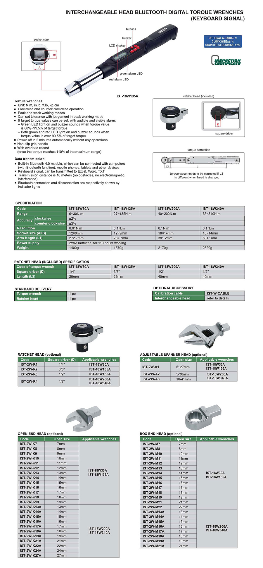 IST-18W135A digital 27~135N.m wireless transmission (keyboard signal) digital display interchangeable head
