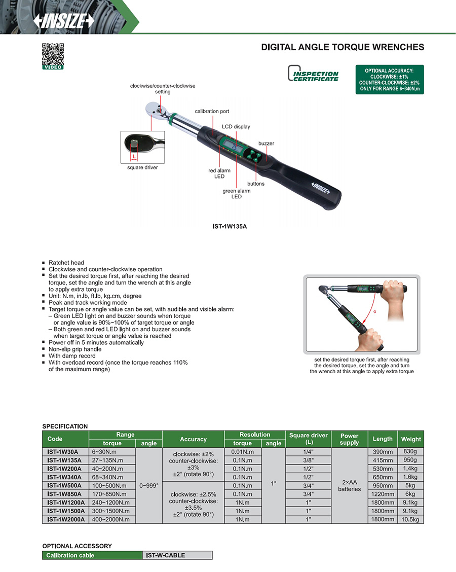 IST-1W200A digital 40~200N.m no transmission digital display fixed ratchet head