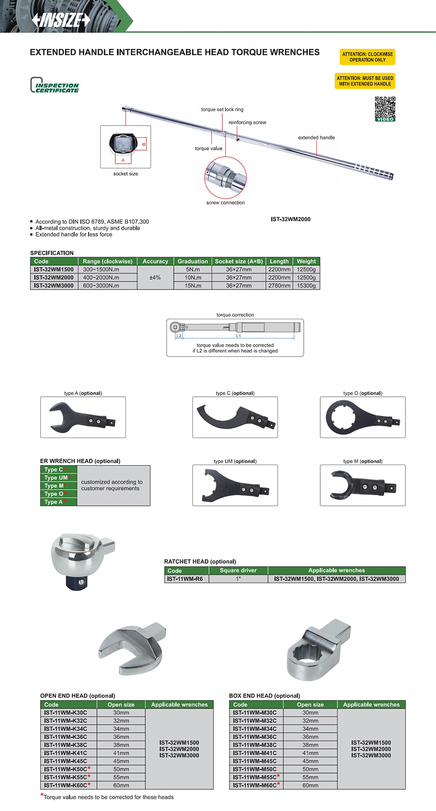 IST-32WM3000 mechanical preset 600~3000N.m engraved-line interchangeable head