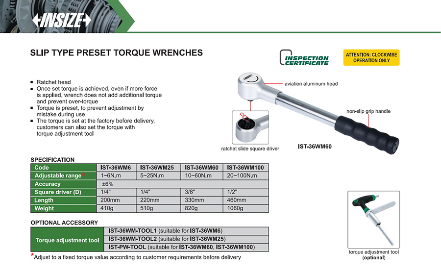 IST-36WM100 mechanical preset 20~100N.m preset fixed-value slip ratchet head