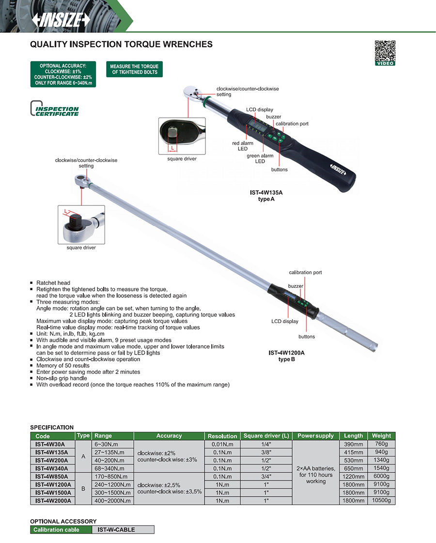 IST-4W200A digital 40~200N.m with memory storage digital display fixed ratchet head