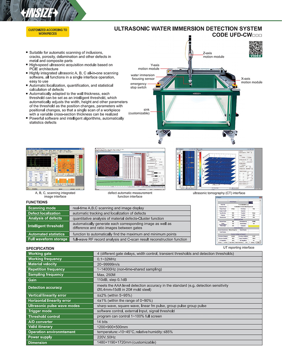 Suitable for automatic scanning of inclusions, cracks, porosity, delamination and other defects in metal and composite parts