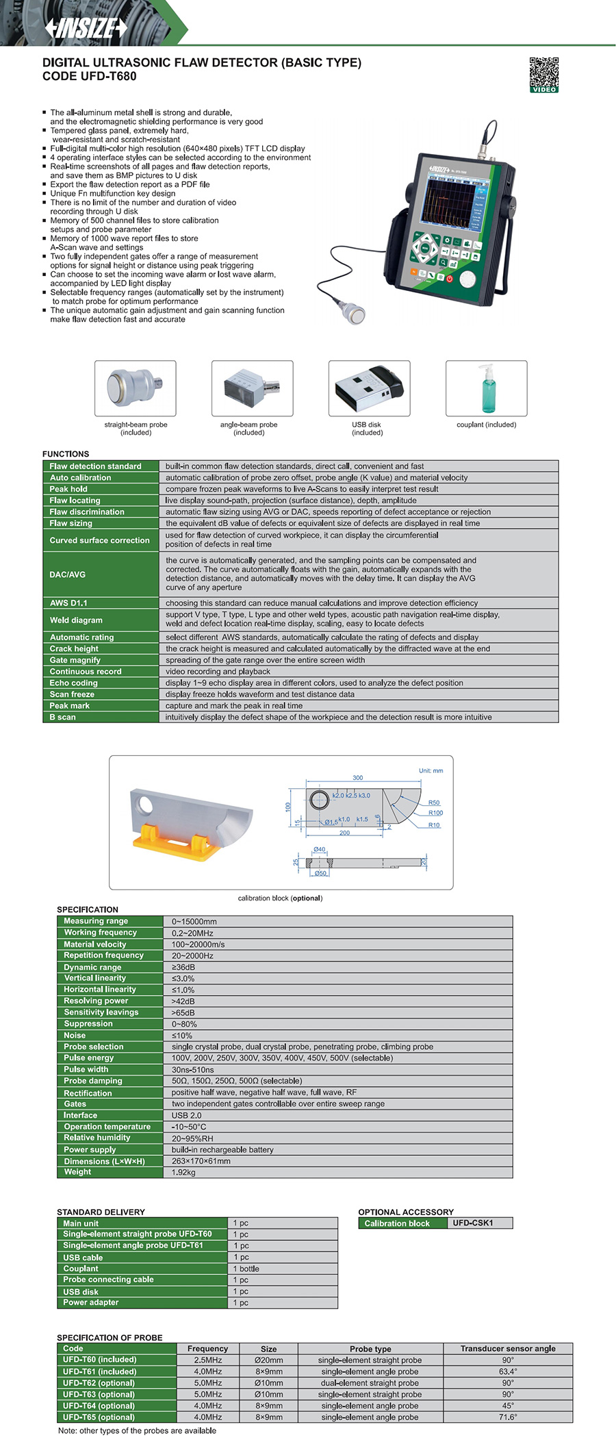 | UFD-T680 | 0~15000mm | 1.0~20MHz | ≤3.0% | ≤1.0% | ≥36dB | >42dB | >65dB |