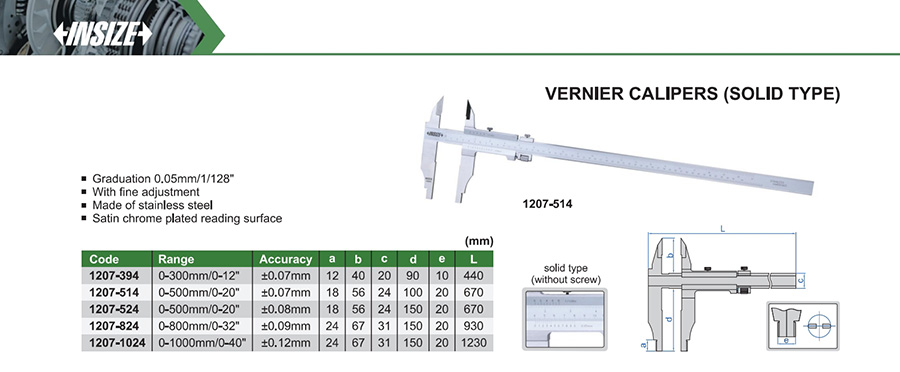 1207-524 0-500mm/0-20" ±0.08mm 0.05mm/1/128"