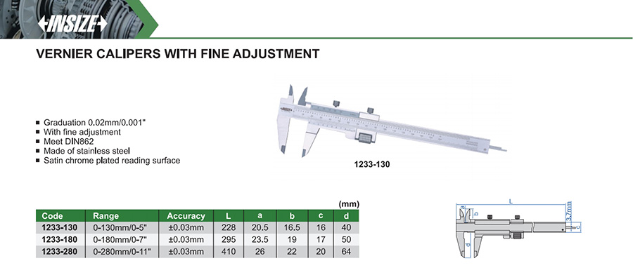 1233-130 0-130mm/0-5" ±0.03mm 0.02mm/0.001"
