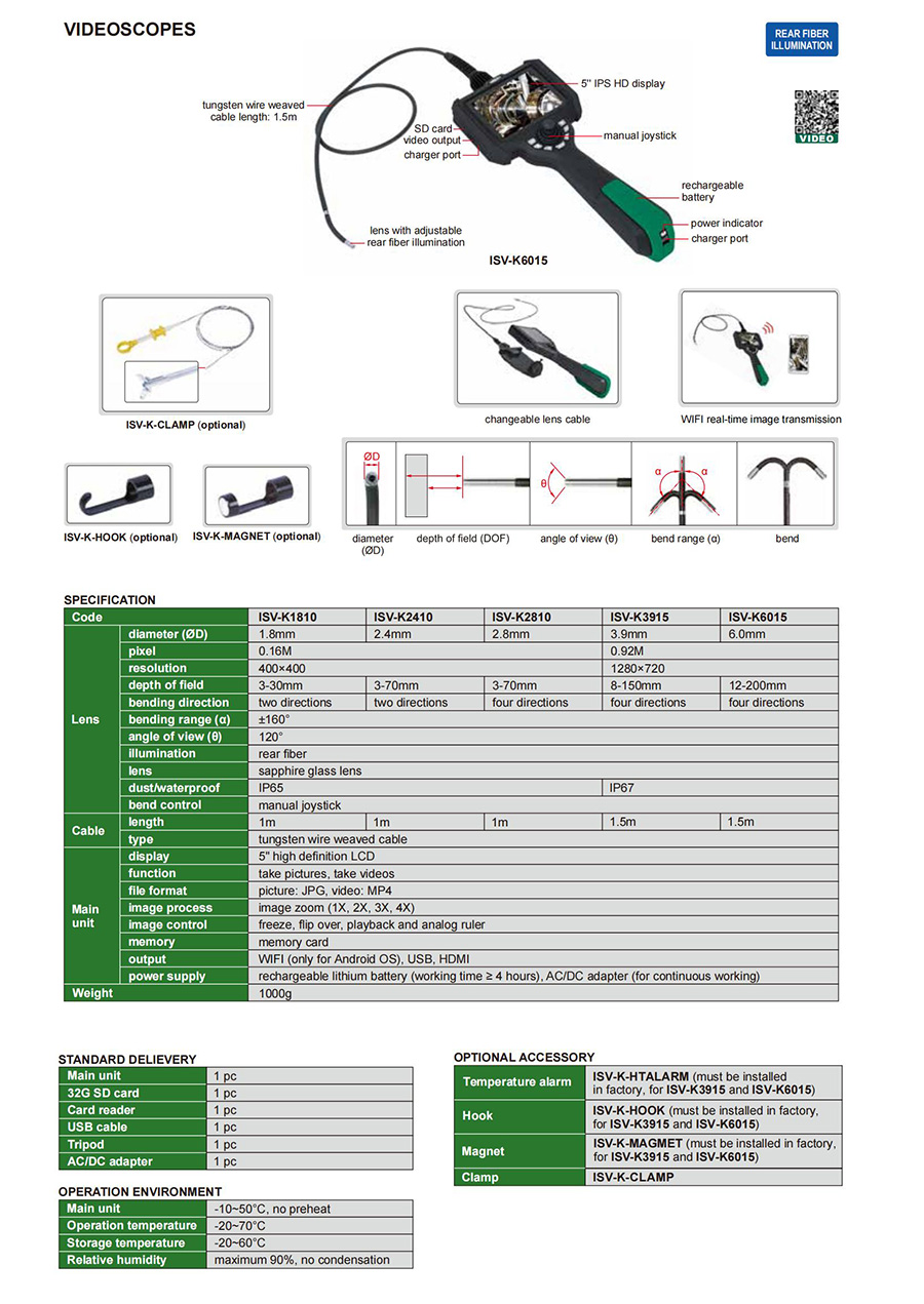 | ISV-K3915 | 0.92M | soft (tungsten wire weaved cable) | front view | 3.9mm | 1.5m | four directions | rear fiber |