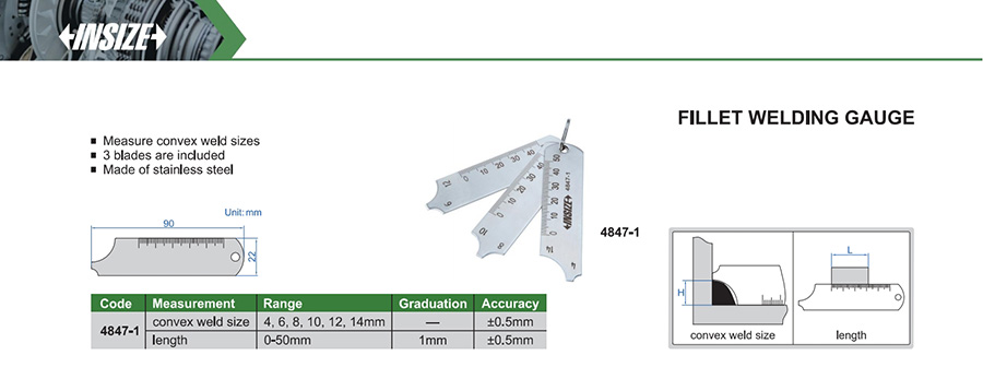 | 4847-1 | 4, 6, 8, 10, 12, 14mm | ±0.5mm | — | convex weld size |